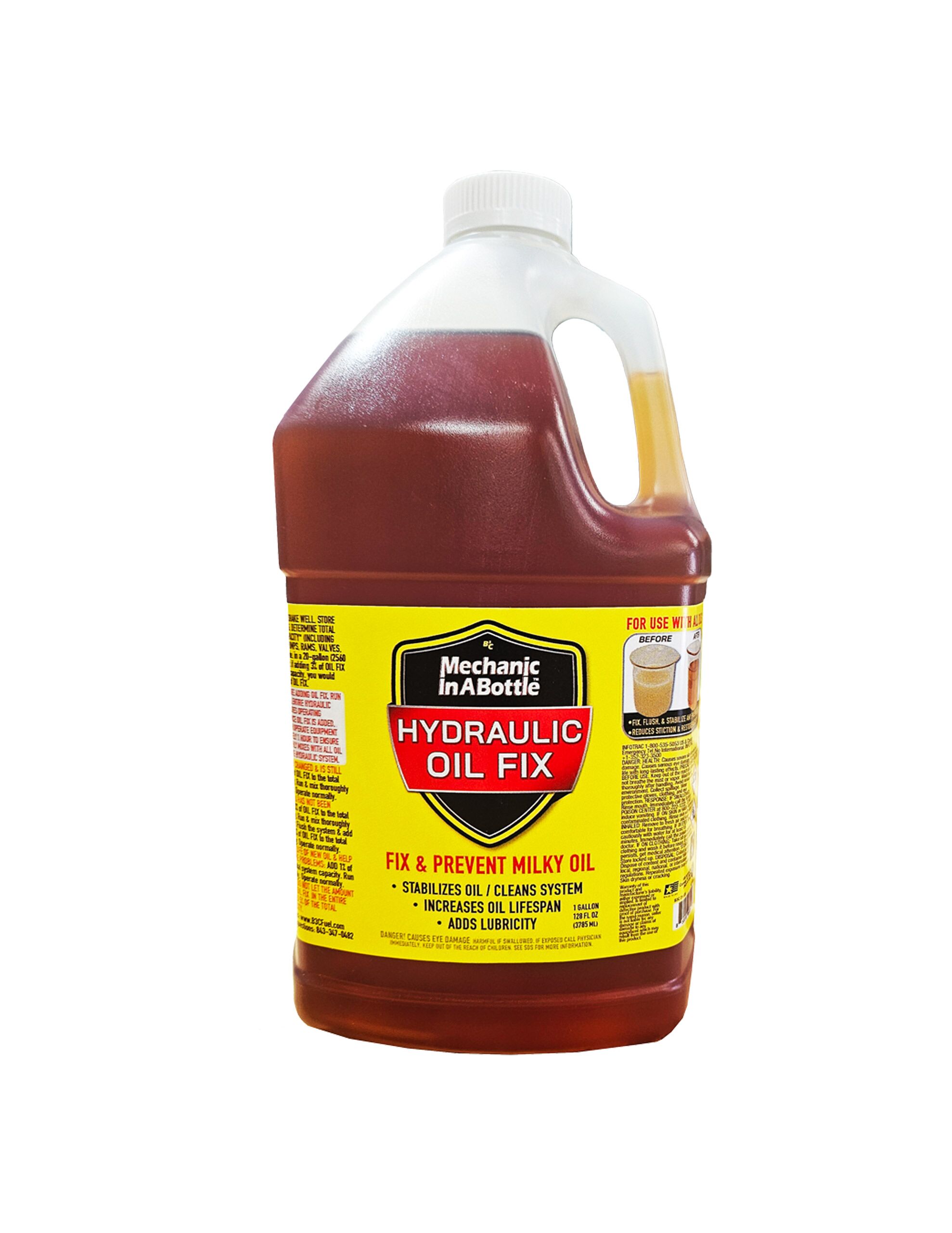 MECHANIC IN A BOTTLE HYDRAULIC OIL FIX & STABILIZER – FIXES & PREVENTS EMULSIFIED OIL & RESTORES VISCOSITY.