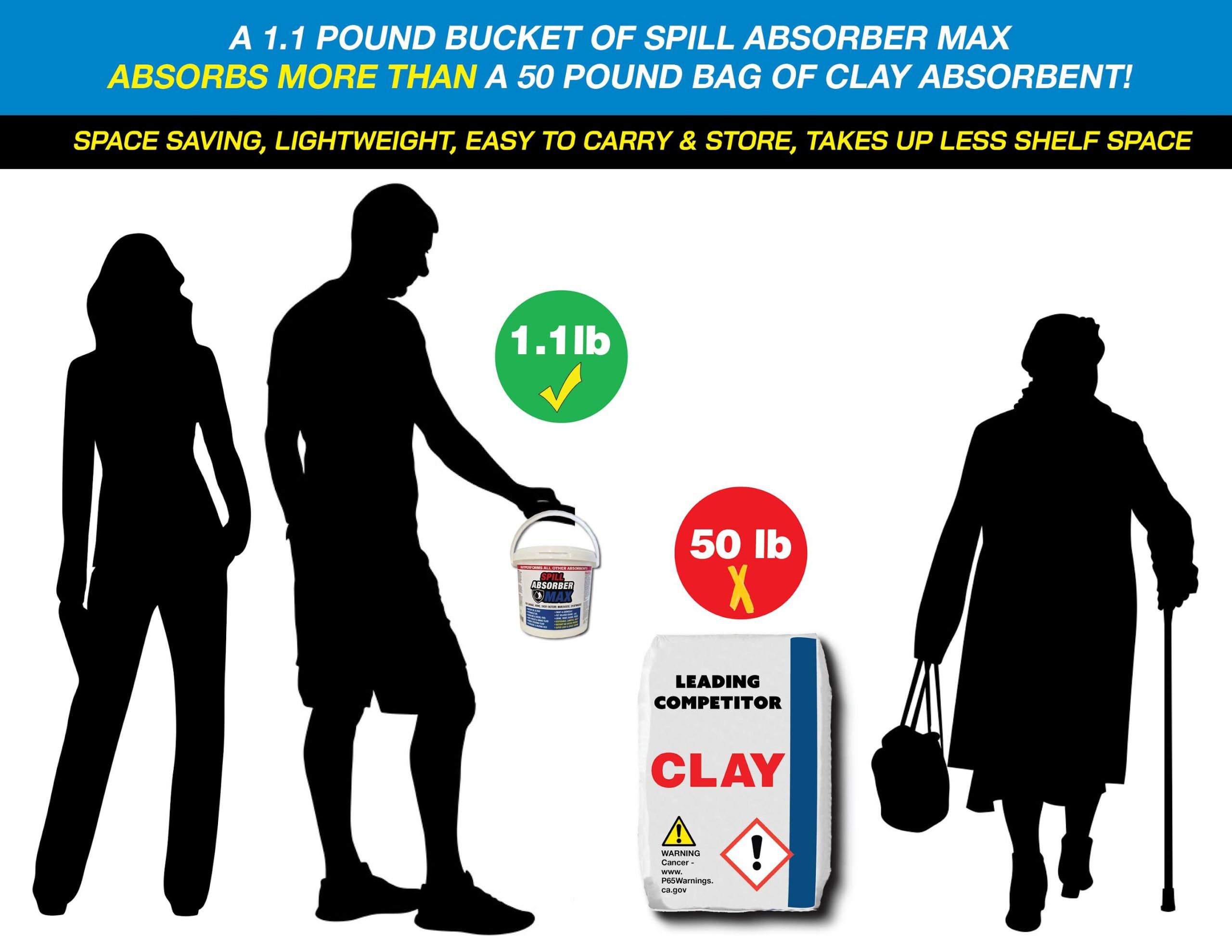 This 1.1-pound bucket absorbs as much as a 50-POUND BAG OF CLAY ABSORBENT!